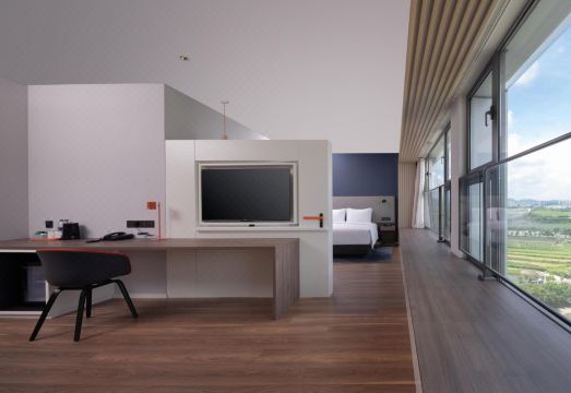 Hotel is located in the center of light science city area, the hotel is close to the international conference center of light, light town happy rural, near more bright area web celebrity clock point hongqiao park, happy farm and other attractions, the hotel has standard big bed room, standard double bed room, Hollywood family room and senior administrative big bed room, 50 inch LCD TV, fashionable and simple rooms, full of ideas. Mobile table board, dry and wet separation bathroom, sufficient and convenient charging jack and USB interface and other thoughtful design, add comfort and privacy to the move-in. Here, guests can enjoy high quality sleep, imagine bath, freely switch between office and leisure mode. The multi-functional shared space on the third floor of the hotel- "Wisdom · Space" provides a Chinese and western breakfast buffet for you to enjoy for free every day and make you start the day alive. Non-meal time easily becomes a flexible place for work and leisure. High-speed network comprehensive coverage, 24-hour self-service convenience station and other self-service facilities, convenient for you to buy all kinds of drinks, food snacks, daily necessities, etc., bring you a simple and wise experience.